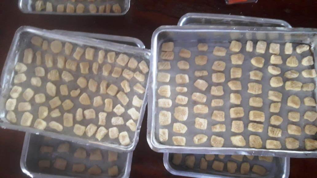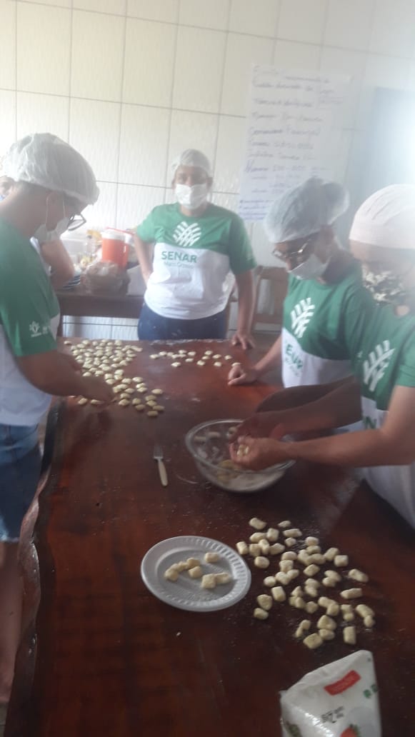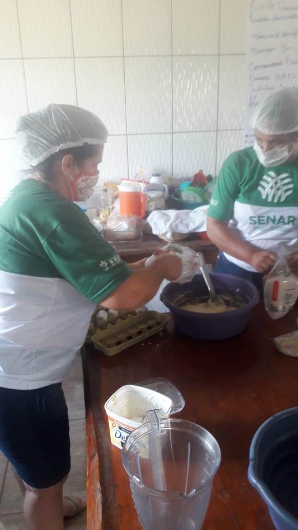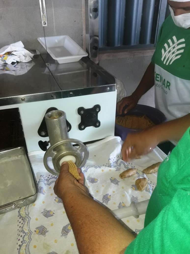 Vários foram os alimentos derivados produzidos pela instrutora do SENAR-MT, Sandra Alves com destaque para: Rosca, cuca, farofa, pão salgado, macarrão, paçoca, canjica, biscoite, bolacha, entre outras receitas.