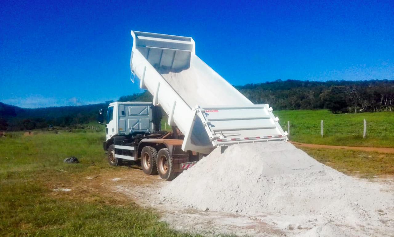 Devido à necessidade do pequeno produtor, o Secretário Municipal de Desenvolvimento Rural, Osenir do Carmo Filho “Tuta autorizou o primeiro trabalho do caminhão para transporte de calcário a um produtor rural que precisava iniciar a correção do solo de sua propriedade.